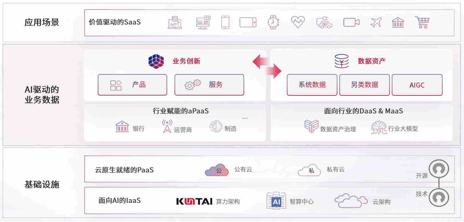 数字时代,,围绕企业数字化转型的关键要素,,,,星空游戏数码开创性的提出数云融合战略和技术体系框架,,着力在云原生、、、、数字原生、、、、AI原生和信创产业上架构产品和服务能力,,为处在不同数字化转型阶段的快消零售、、汽车、、、、金融、、、医疗、、、政企、、教育、、、、运营商等行业客户提供泛在的敏捷IT能力和融合的数据驱动能力,,,构建跨界融合创新的数字业务场景和新业务模式,,,,助力企业级客户建立面向未来的核心能力和竞争优势,,全面推动社会的数字化、、、智能化转型升级。。